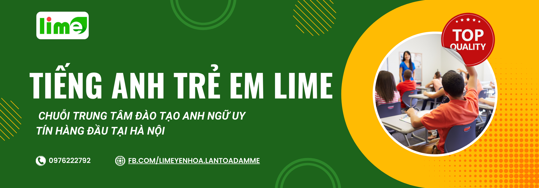 Tiếng Anh Trẻ Em LIME là chuỗi trung tâm đào tạo Anh ngữ uy tín tại Hà Nội, với nhà giáo tận tâm, cung cấp các khóa học, chương trình đào tạo chất lượng theo chuẩn Quốc tế. Trở thành Trường đào tạo đa ngôn ngữ, đào tạo hướng nghiệp, hỗ trợ lao động quốc tế.